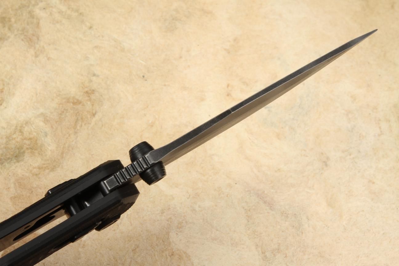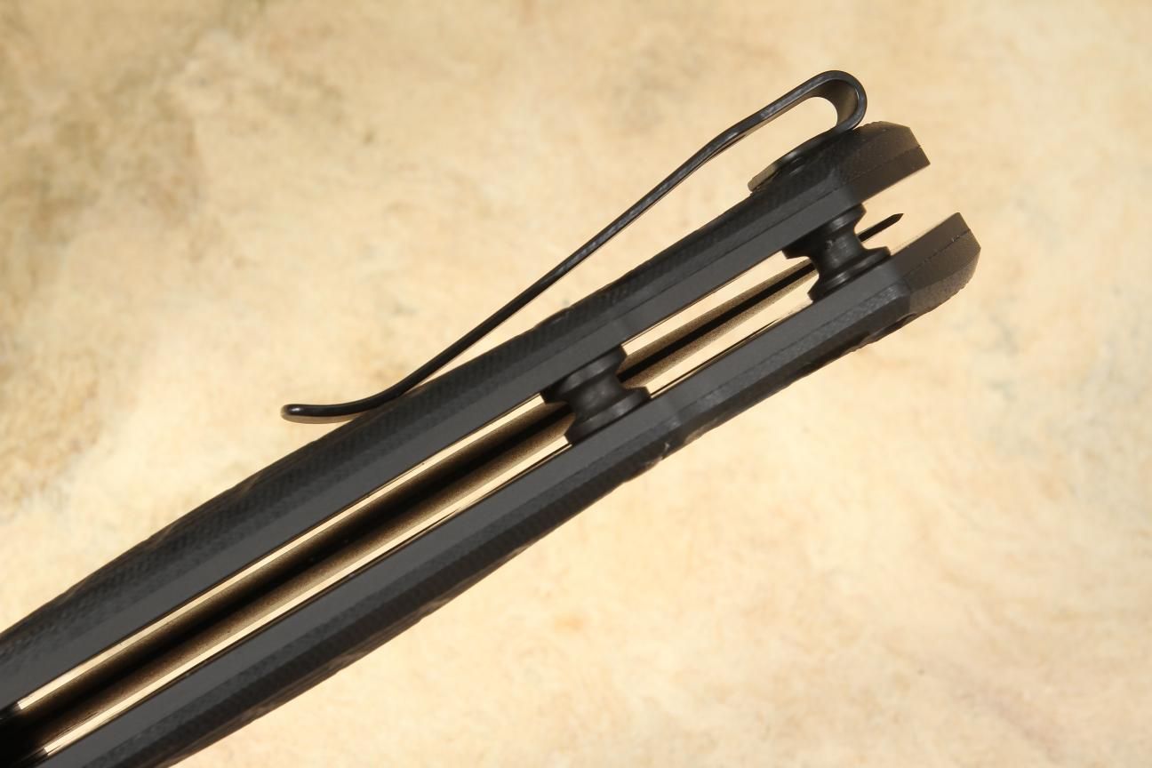 The handle uses machined black G10 scales that provide enhanced grip and long-term durability. The textured machining helps maintain traction in wet conditions or while wearing gloves, while still keeping the knife balanced and comfortable. It features the DuraLock system for solid lockup and smooth, safe release. The design is fully ambidextrous and supports easy one-handed opening and closing thanks to dual thumb studs and a precision pivot that delivers smooth, reliable action. Just pull back on the lock bar, and the knife blade releases. A reversible tip-up pocket clip and lanyard hole add flexible carry options.