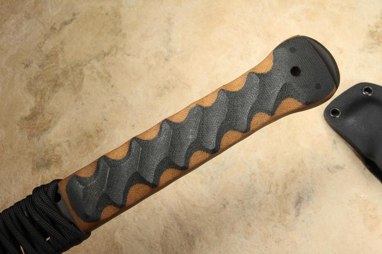 The Hammer Combat Axe is crafted from a single piece of steel, creating an integral, highly durable tool for heavy use The Hammer Combat Axe is coated with a black Caswell finish, offering reduced glare and exceptional rust prevention. The sculpted wasp canvas laminate (equivalent to micarta) and black paracord wrap handle allow for excellent grip and control, even in rain, snow, or mud, making the Winkler Axe ideal for survival and outdoor uses in which natural elements are an issue. The Winkler Combat Axe comes equipped with a custom felt-lined black Kydex sheath, adding an extra layer of protection to the axe and allowing for easy carry in multiple positions. With an overall weight of 1 pound 11.1 ounces, the Winkler Combat Axe in micarta and black cord wrap provides the heft needed for military breaching or outdoor survival tasks, making it the perfect axe for any military, combat, or survival arsenal.