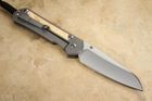 The Chris Reeve Large Sebenza 31 is 8.335" in overall length with a 3.625" blade made of CPM Magnacut stainless steel, which was made by Crucible Industries. It uses vanadium and niobium to create extremely tough and hard tool steel. The insingo blade is finely stonewashed and hollow ground for the best slicing profile. With a Rockwell hardness of 63-64, it is extremely hard and holds a razor-sharp edge, and endures all sorts of punishment cut after cut. The knife has a bronze anodized titanium thumb stud for opening with your right hand.