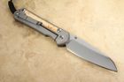 The Chris Reeve Large Sebenza 31 is 8.335" in overall length with a 3.625" blade made of CPM Magnacut stainless steel, which was made by Crucible Industries. It uses vanadium and niobium to create extremely tough and hard tool steel. The insingo blade is finely stonewashed and hollow ground for the best slicing profile. With a Rockwell hardness of 63-64, it is extremely hard and holds a razor-sharp edge, and endures all sorts of punishment cut after cut. The knife has a bronze anodized titanium thumb stud for opening with your right hand.