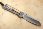The Chris Reeve Large Sebenza 31 is 8.335" in overall length with a 3.625" blade made of CPM Magnacut stainless steel, which was made by Crucible Industries. It uses vanadium and niobium to create extremely tough and hard tool steel. The insingo blade is finely stonewashed and hollow ground for the best slicing profile. With a Rockwell hardness of 63-64, it is extremely hard and holds a razor-sharp edge, and endures all sorts of punishment cut after cut. The knife has a bronze anodized titanium thumb stud for opening with your right hand.