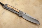 The Chris Reeve Large Sebenza 31 is 8.335" in overall length with a 3.625" blade made of CPM Magnacut stainless steel, which was made by Crucible Industries. It uses vanadium and niobium to create extremely tough and hard tool steel. The insingo blade is finely stonewashed and hollow ground for the best slicing profile. With a Rockwell hardness of 63-64, it is extremely hard and holds a razor-sharp edge, and endures all sorts of punishment cut after cut. The knife has a bronze anodized titanium thumb stud for opening with your right hand.
