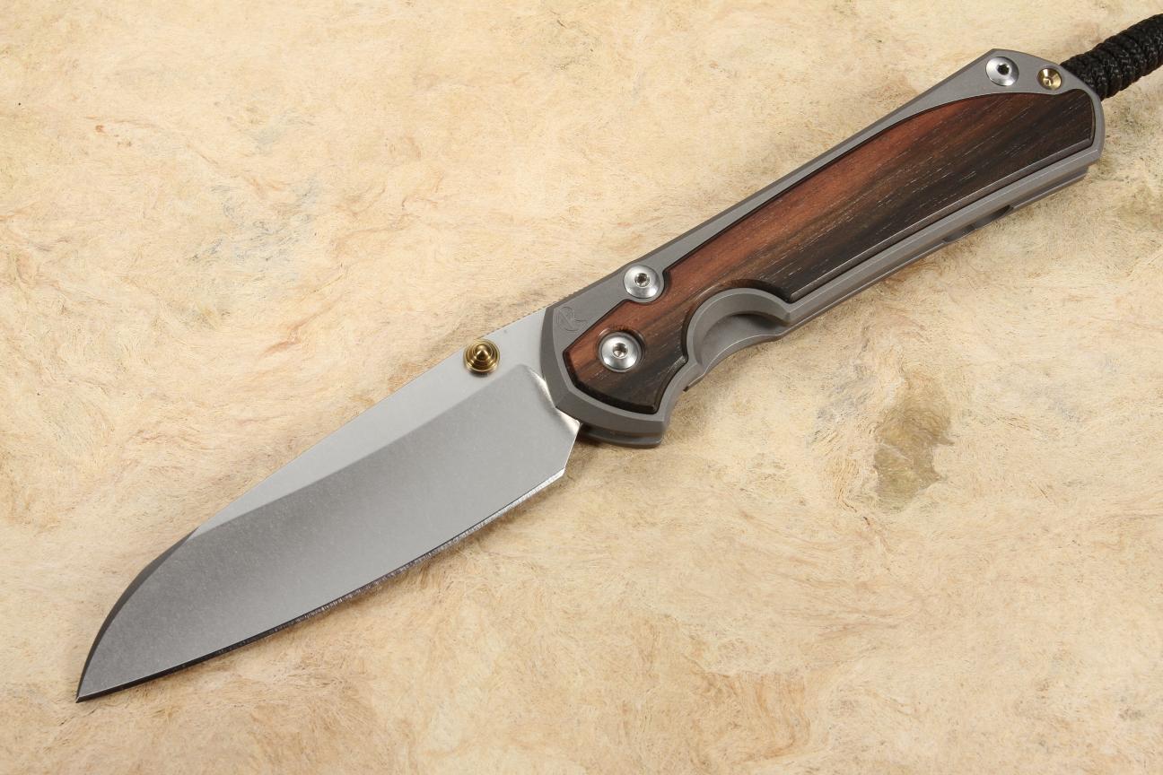 This is an upscale wood inlay build of the timeless Sebenza 31 folding knife. It features an insingo blade, matte blasted titanium handle, and macassar ebony inlays. The highly figured color of the Macassar Ebony will be a stunning addition to your EDC or collection.