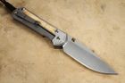 The off-set clip is an improvement over the Sebenza 21 as well, giving the user a more comfortable grip. This large Sebenza 31 has raised box elder burl inlays on the titanium handle. The titanium is strong, ridged, and finished to perfection. The sebenza gives you the freedom to clean and lubricate the perforated bronze phosphor pivot washers or switching out thumb studs and spacers to customize your knife. You can easily field-strip the entire knife with an Allen wrench to make sure it is maintained properly.