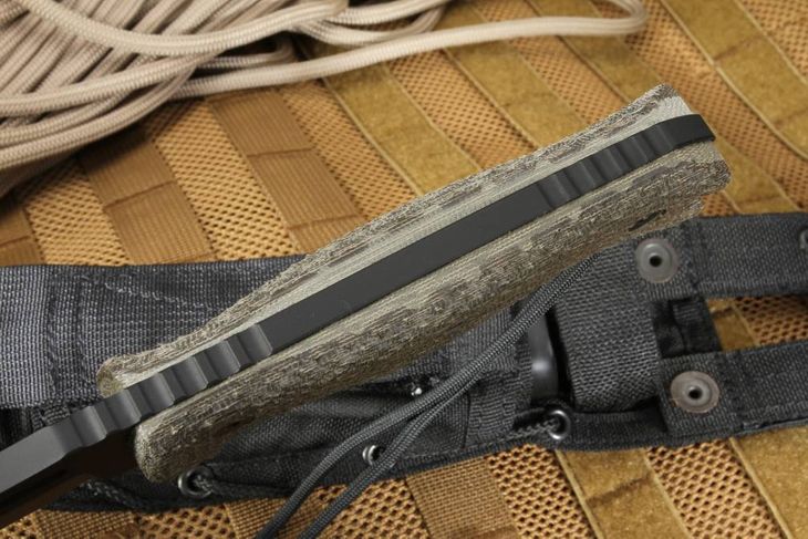 The Little Beast's sleek handle scales are constructed from 3D CNC machined and contoured G-10 or Canvas Micarta, providing a comfortable and solid grip, even in wet conditions. An exposed, jimped pommel adds to the versatility of the Little Beast, providing a sturdy hammering surface. The Little Beast comes equipped with a 550 cord lanyard, and slots in both the pommel and front guard offer added adaptability.