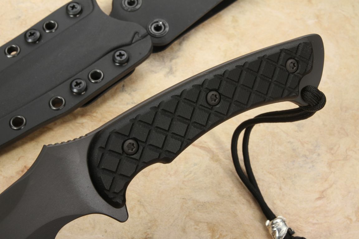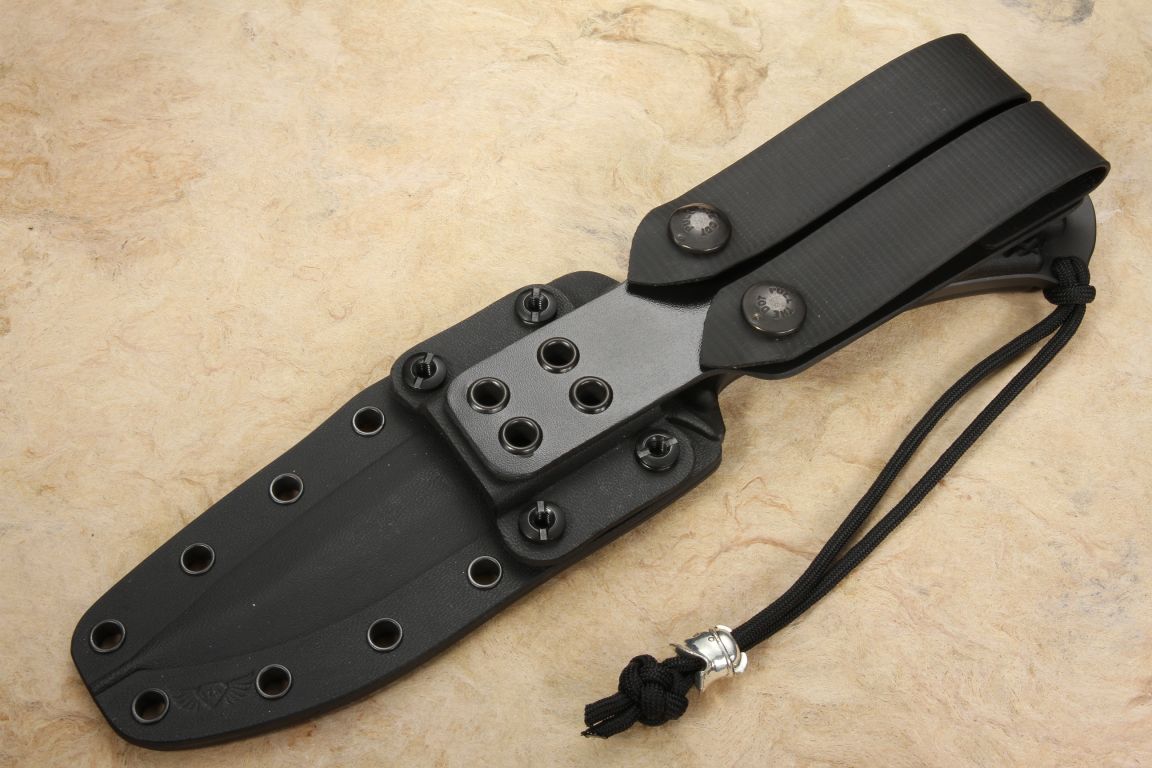 The machined G-10 handle produces a positive grip. The black kydex sheath keeps your knife where you need it, and ready to use, whether it is in the field, hunting, camping, or for tactical use.