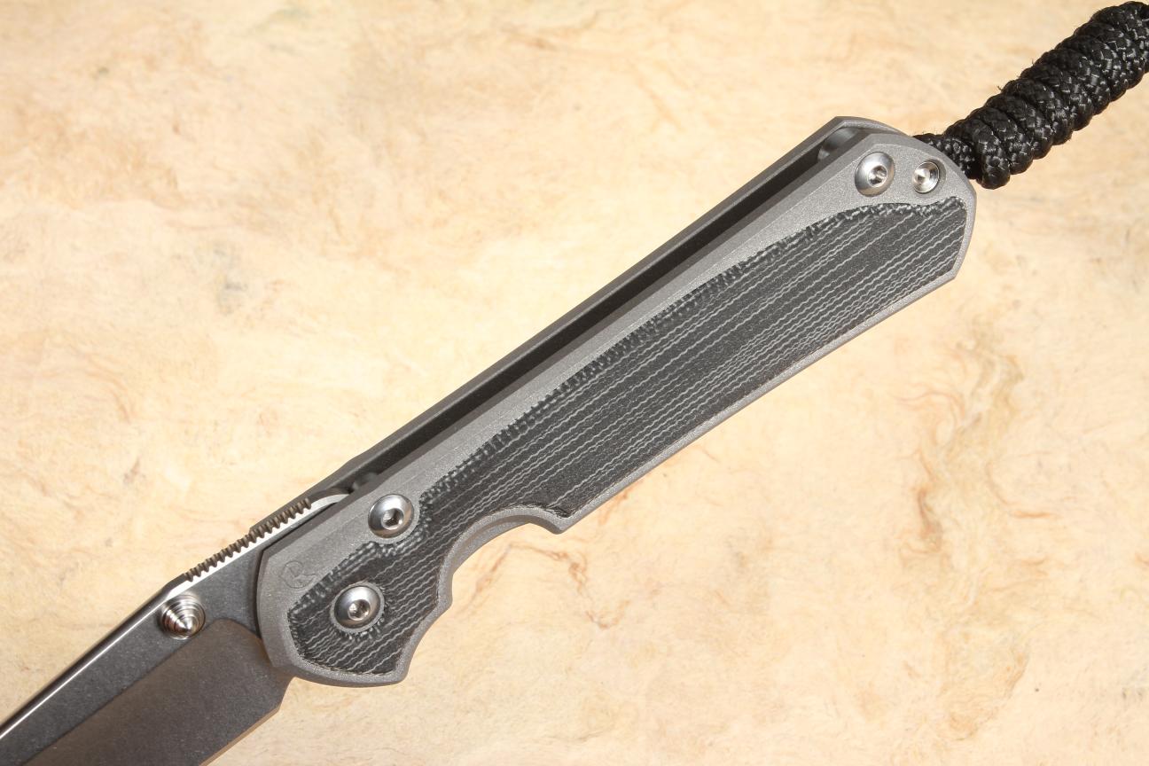 The handle is made from 6AL4V blasted titanium which provides an excellent strength-to-weight ratio as well as corrosion resistance. This Sebenza 31 has black canvas micarta inlays. The frame lock incorporates a 1/8" ceramic ball to reduce abrasion between titanium and steel and gives you a reliable, solid lock use after use. The titanium pocket clip is nice for deep-pocket, tip-up carry and has been offset to provide you with a better feel in your hand than previous designs. The Small Sebenza 31 is available in right or left-handed designs with a myriad of customization options available. Chris Reeve Knives allow you to customize with spacers, thumb studs, and even replacement perforated bronze phosphor bushings, so you can adjust the knife exactly how you want it in the field. Chris Reeve Knives are proudly made in Boise, ID, USA.